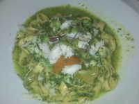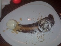 For those of you who don’t know, NYC restaurant week is a wonderful time of year when about 100 restaurants offer a $35, 3 course prix fixe dinner (half or even less than half of what it would normally cost). It’s a great way to try places that you wouldn’t necessarily try otherwise. It’s a perfect opportunity for restaurants to lure new customers in and give them a great reason to return. Or not. The problem with this approach is that a lot of the time, the prix fixe choices become sort of half-assed representations of what the restaurant is capable of…and don’t always showcase the best of their abilities. This was the location for my 2nd annual random Facebook friends restaurant week dinner party- so a group of 8 people who didn’t know each other and I met here for dinner tonight. Well, I’ll start with the positive. The company was fantastic. It’s amazing how much fun a group of strangers can have, and regardless of our meals- we had a blast. The service was fine. Nothing special, but nothing terrible either. (although they did forget to take a coffee order until someone finally asked about it) Our meals were fine. Nothing was bad, but nothing was so fabulous that any of us will be chomping at the bit to go back. I started with a homemade mozzarella and tomato salad. The tomatoes were unbelievable and I was happy to find out that they were from the Union Square Farmer’s market. They were probably my favorite part of the whole meal. The cheese was fresh and had a nice flavor, but was a bit dense and stringy for what should have been a creamy consistency. The one small basil leaf left something to be desired and I felt a little gypped. My entree was a linguine with pesto and fresh crab. It was incredibly over-salted and had way too much garlic- even for a garlic lover like myself. The pesto itself was so strong and overpowering that I completely lost the crab taste altogether when it really should have been the star of the dish. The pasta was quite good actually, but I think I would have appreciated that a lot more if the sauce wasn’t so strong. For dessert I had the chocolate option, because is there really any other option if chocolate is one of them? I think not. It was pretty tasty. It’s pretty hard to disappoint me if there is chocolate and ice cream in the same dish. That said, it was good but forgettable, generic, and the presentation was eh. All in all, this was a fine choice for a great deal, but there are better options out there. I should mention that some of the other dishes on the table were far superior to what I ordered, so it might warrant another try with different choices. Then again, we live in a city with 20,000 dining options so for me, it’s on to the next.