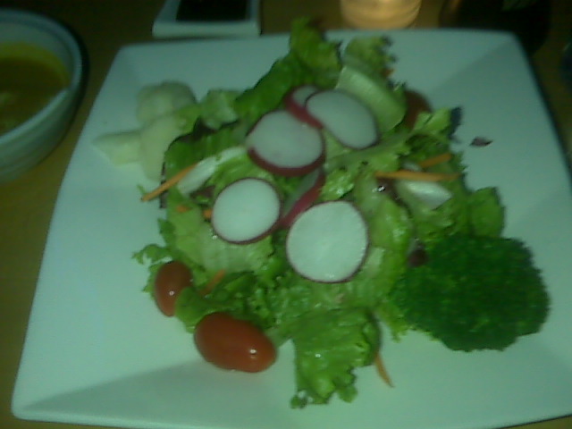 We each had a salad to start, and were pleased to see ‘real’ lettuce instead of iceberg, good tomatoes, carrots and radishes and a very nice ginger dressing on the side.