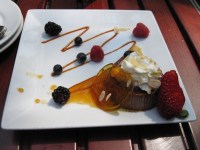 I wasn’t stuffed enough to refuse dessert and since Betsy doesn’t have a sweet tooth like I do, she let me pick. I asked Shane about the Nutella Flan and he raved so much about it that I knew I’d made a good choice. I am not a big flan person, but this sounded interesting with chocolate ganache, caramel, roasted almonds and berries and I was SO SO SO glad I ordered it. A deep, rich chocolate/hazelnut flavor that somehow tasted dense and light at the same time. I had no problem cleaning the plate- even with Betsy’s singular teaspoonful.