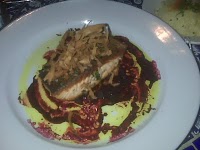 I was feeling pretty full already and was glad that I ordered a relatively light dish compared to the heavy meats and grains that the menu consisted mostly of. I was very impressed with my delicious salmon (although it was supposed to be medium rare and was definitely closer to well-done). It had a crispy crust and sat on a bed of beets and crunchy turnips (or maybe parsnips) that added a nice textural element to the fish. The cous cous, which is normally not my favorite grain, was actually really enjoyable, especially with the flavors of the salmon’s sauce mixed in. A taste of my date’s lamb was awesome and extremely tender, and I could see why it’s one of his favorite dishes at a favorite place.