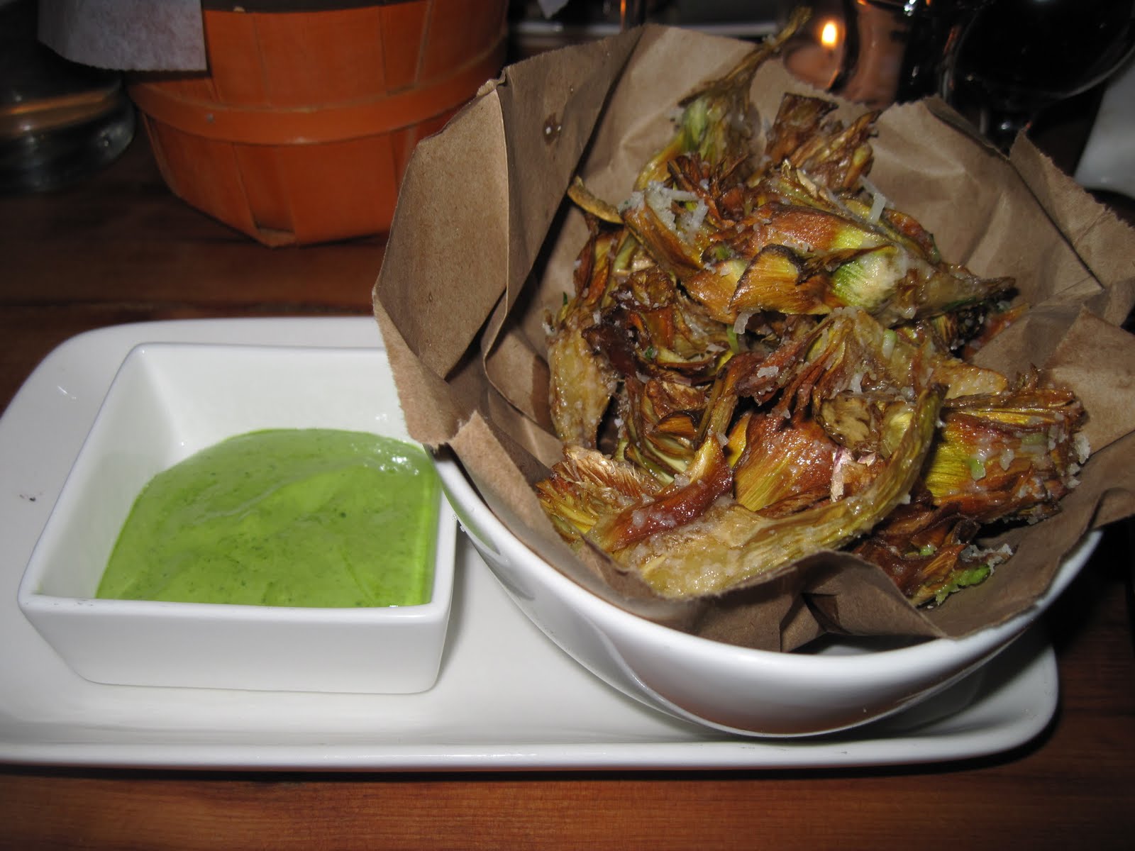 A friend and I met for dinner tonight. We made reservations for 7:30 and were seated immediately. Water and bread were brought out right away as we browsed the menu- which was very similar to Uva, one of my local favorites just a few doors over. The wine list is extensive, 3 times the size of the food menu, so I decided to have a taste size glass of Pinot Grigio. I LOVE when restaurants offer this petite size, perfect for someone like me that has a low tolerance but loves the taste.