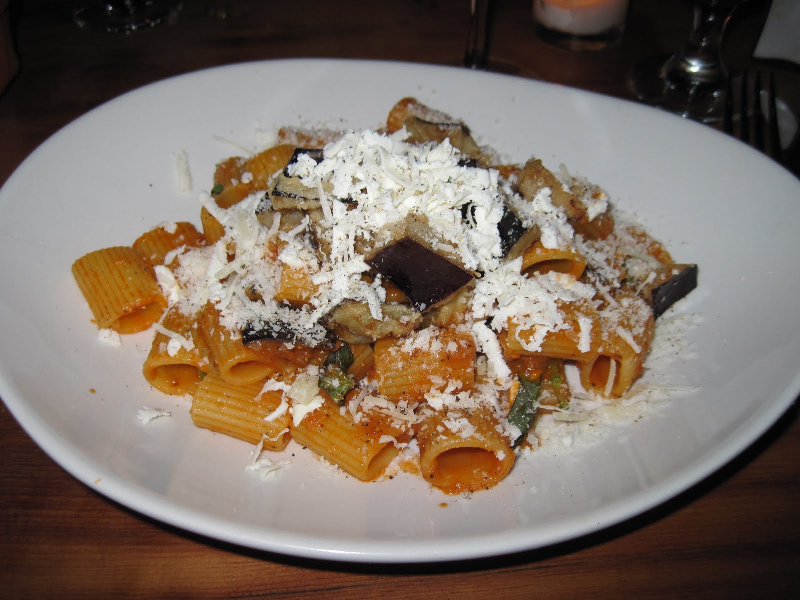 The bread was fresh and had a great consistency, but I felt the olive oil for dipping was not the best quality. I ordered the artichokes starter which came with a delicious basil aioli dipping sauce and I was very impressed with it. The artichokes were quartered and pan fried. They were not coated in any kind of breading or batter so you could really just taste the vegetable without grease or crust in the way. Fantastic appetizer for an artichoke lover like myself. For my entree I had the Rigatoni with eggplant and ricotta and I absolutely loved it. The pasta was obviously homemade and cooked perfectly al dente. The light tomato sauce and eggplant were hearty without being heavy, and the cubes of ricotta added a rich, creamy touch. I had ordered a half size portion (another size option that I love) and cleaned my plate. The only negative here was the service. Our waitress was clearly rushed in telling us the specials and did not check in us much at all. They have a staff of busboys who pretty much take over after orders are placed and we literally sat and chatted for half an hour after we were offered dessert and declined. When we finally saw our waitress, who had pretty much vanished, we asked for the check. Now, don’t get me wrong. I  DO like to be able to chat without feeling like we are being rushed out the door, but I also feel that in periodic check-ins are the wait staff’s responsibility and that was clearly not part of her repertoire. I think they are a bit understaffed since they are so new, and they will probably work out these kinks as they go forward.