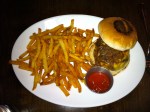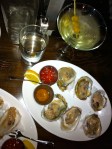 We had a deal where we got a martini, a burger, fries, and 6 oysters each for $22. SCORE. (normally double that price) The oysters were our choice of 2 east coast selections and they were freshly shucked and fantastic. The only thing I didn’t love was that each one sat on a bed of salt instead of the usual bed of ice. This added a salty slurp to each one that was unnecessary and a bit overpowering. The burger was AWESOME with caramelized onions and american cheese. I would have liked some other fancier cheese options- maybe gruyere or blue, but it was really excellent just the way it was…except maybe a little closer to medium-well than the medium I’d ordered. The fries, which were perfectly crispy when they came out well-done as requested, were impossible to not finish. The martini pretty much got me drunkity drunk drunk after 3 sips and the extra olives were super enjoyable once they’d soaked up the vodka.