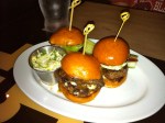 When we got there it was relatively empty (since we were there at the weirdo dinner time of 5pm-ish) and we were seated right away in a booth in the back at our request where the air conditioner, thank GOD, was blasting. When our waiter came to take our order, we found out that Go Burger is part of the ‘BLT’ restaurant group, and since we’d recently tried BLT Fish and loved it, we were excited to see how this meal would be. We asked his opinion about the various kinds of fries, and he told us very honestly that the duck fat fries were really just a lot of hype and that the waffle fries, sweet potato fries or onion rings were a better way to go. We had actually already been leaning toward one of those 3 options, but eventually we strayed from that section of the menu altogether and decided to share the jalapeno poppers as a side instead at our waiter’s very strong suggestion. Gabriel ordered a ‘Monkey Business’ milkshake: banana, peanut butter, chocolate ice cream, and a ‘Ultimelt burger’ (caramelized onions, bacon burger between 2 thin rye and grilled Gruyère sandwiches) and I ordered the sliders appetizer, choosing 2 BLT mini burgers (smoked bacon, lettuce, tomato, BLT burger sauce) and 1 Maytag blue cheese mini burger (maytag blue cheese, caramelized onions, mushrooms). Everything we ordered (which, by the way, came out SUPER fast) was fantastic. The milkshake was enormous, and was topped with a reese’s peanut butter cup and whipped cream- nice touch. The poppers were hot, crunchy and had the meltiest cream cheese center. The burgers were fresh, high-quality, and topped perfectly. Gabriel’s burger was cooked perfectly and so was one of my sliders, but I must say that the other two were kind of over-cooked and hence a bit dried out. The bacon on them was awesome though, thick cut, smokey and juicy, and it made up for the not-so-moist hamburger meat beneath it.