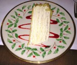 The dessert was my favorite course. It’s not hard to see why this cake is the one that Lady M is famous for. Wow. About a million layers as thin as crepes were piled high with a spread of whipped cream in between each. Underneath the cake was fresh raspberry coulis, the perfect accompaniment. It was SO indulgent, SO light, beautiful, simple and really incredible tasting.