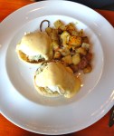 Next I had the goat cheese, arugula, mushroom omelette with home fries. This is a gorgeous, fluffy, omelette, cooked to perfection with a creamy, cheesy, mushroomy interior. My only complaint about it is that I only saw one tiny piece of arugula in there- it was mostly cheese and mushrooms. Still delicious, just not as green as I’d hoped. The home fries were wonderful- not greasy, cooked just right, and a bit spicy with various peppers mixed in. The bloody Mary is one of the best ones I’ve ever had- and was even better once I asked for a few extra olives. Gabriel ordered the Eggs Benedict over fresh crab meat and it was amazing. The crab was so fresh, flaked and chilled and piled underneath the most beautifully poached eggs. We both pretty much licked our plates clean.