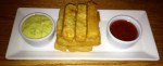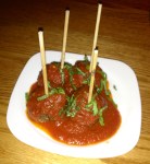 When were near the end of those 2 plates, we sent our next order via Ipad to the kitchen. I must comment that the turnaround time is super fast, and you really can order plates and expect to get them in 5 minutes or so. It makes me wonder if everything is precooked and just reheated when you order, which isn’t great, but still- the food tasted pretty darn good. Our next order was the calamari & cannellini with herb marinade, pomodoro, and pancetta and the meatball lollipop pomodoro with fresh pomodoro sauce. The calamari was ok- but I didn’t love it. I do adore calamari in general, but somehow, even with the nice assortment of herbs, this lacked flavor. The meatballs were also kind of boring, nothing special- even though the waitress had recommended them as a favorite. We were still a bit hungry after finishing those 2 plates and decided to order one final one. We settled on the chickpea fries with tomato jam (YUM) and curry aioli. I have to say this was a big hit for me. What a cool concept to have crispy, crunchy fried outside with a creamy, melty, hot, inside of chickpea puree. I really loved the sweet and tangy tomato jam that it came with and the adorable Jenga-like stack it was presented in. I polished off more than my fair share of this plate.