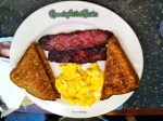 Gabriel and I had breakfast here yesterday. It couldn’t possibly be more convenient as it’s less than a mile from where we live. We were seated in a comfortable booth right away and a VERY smiley and friendly waitress came to bring us menus and a delicious pot of hot coffee. We were a little surprised that the coffee, though it’s served in an unlimited-refills pot, is charged per person, not per pot. Next time we might opt to share one mug 🙂