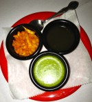 It began with a delicious hot and crispy potato/pea samosa with a side of chick peas and the 3 classic sauces that I love. One is a chopped onion mix in a red sauce, one is mainly cilantro and herbs (yum) and one is a sweet brown sauce. I wish I knew more about these and what is in them, I just know they are the common trio at most Indian restaurants and I’m definitely a fan of putting them on everything I’m served.