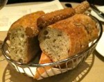 Our waiter attended to us quickly; bringing over yummy, crunchy, cheddar-y homemade crackers, taking our orders for wine, and going over the specials- which all sounded wonderful. As always, there was a lot of sharing between Gabriel, my mother, and I- which allowed tastes of a bunch of options. (My step-dad, historically, humorously, and much to our collective chagrin, does not share very often.) The three of us started with the following three apps.