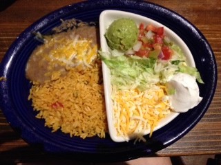 I ordered the seafood Chimichanga (stuffed with shrimp, lobster, crab meat, portabella mushrooms and mixed cheese. Wrapped in a Garlic Herb Tortilla with Cilantro Sherry Cream Sauce, salsa and guacamole) but asked that it not be deep fried as the menu described it. He said that was no problem and told us both we had 2 options for the beans, but then corrected himself and said only one was vegetarian and that he would make sure that’s what we’d both get.